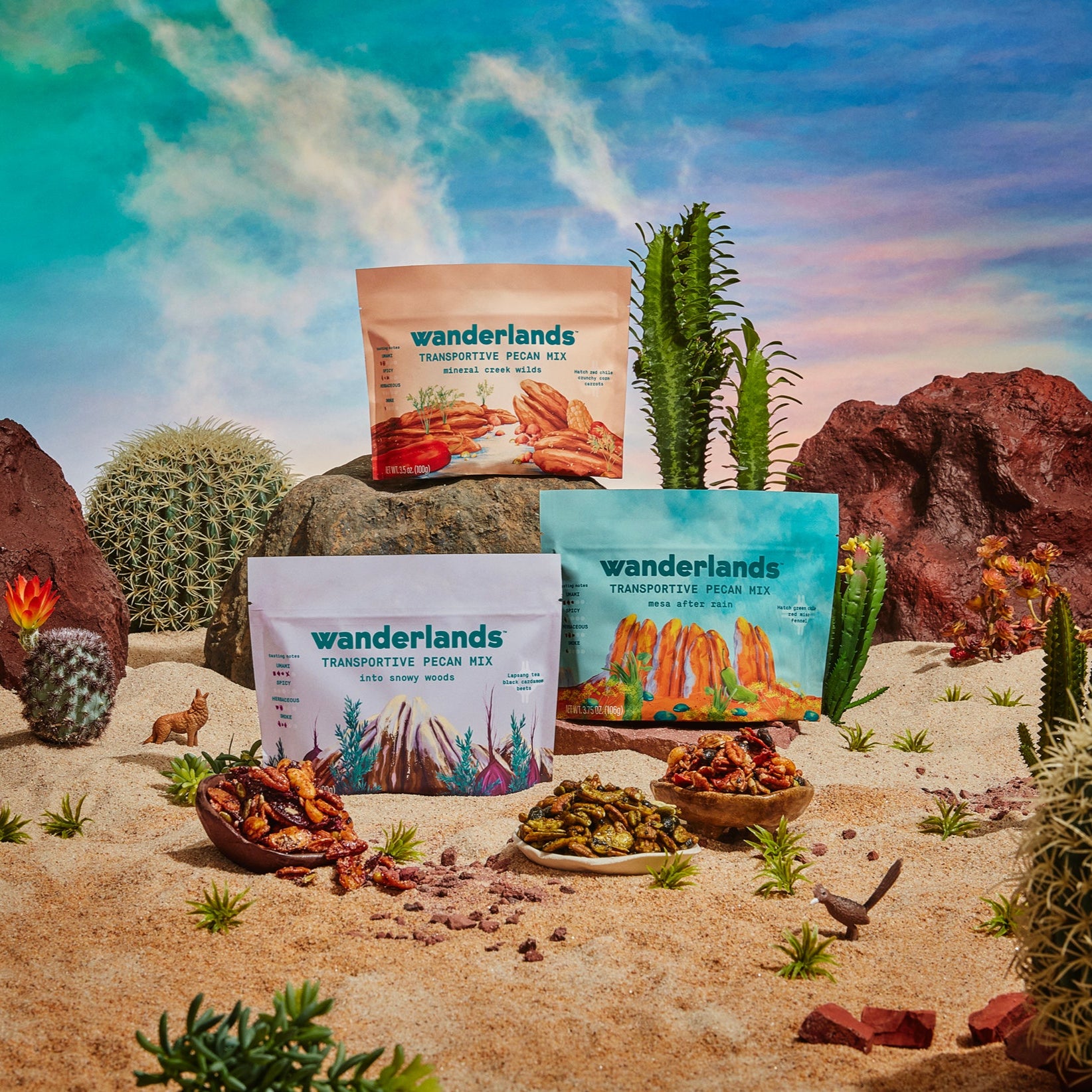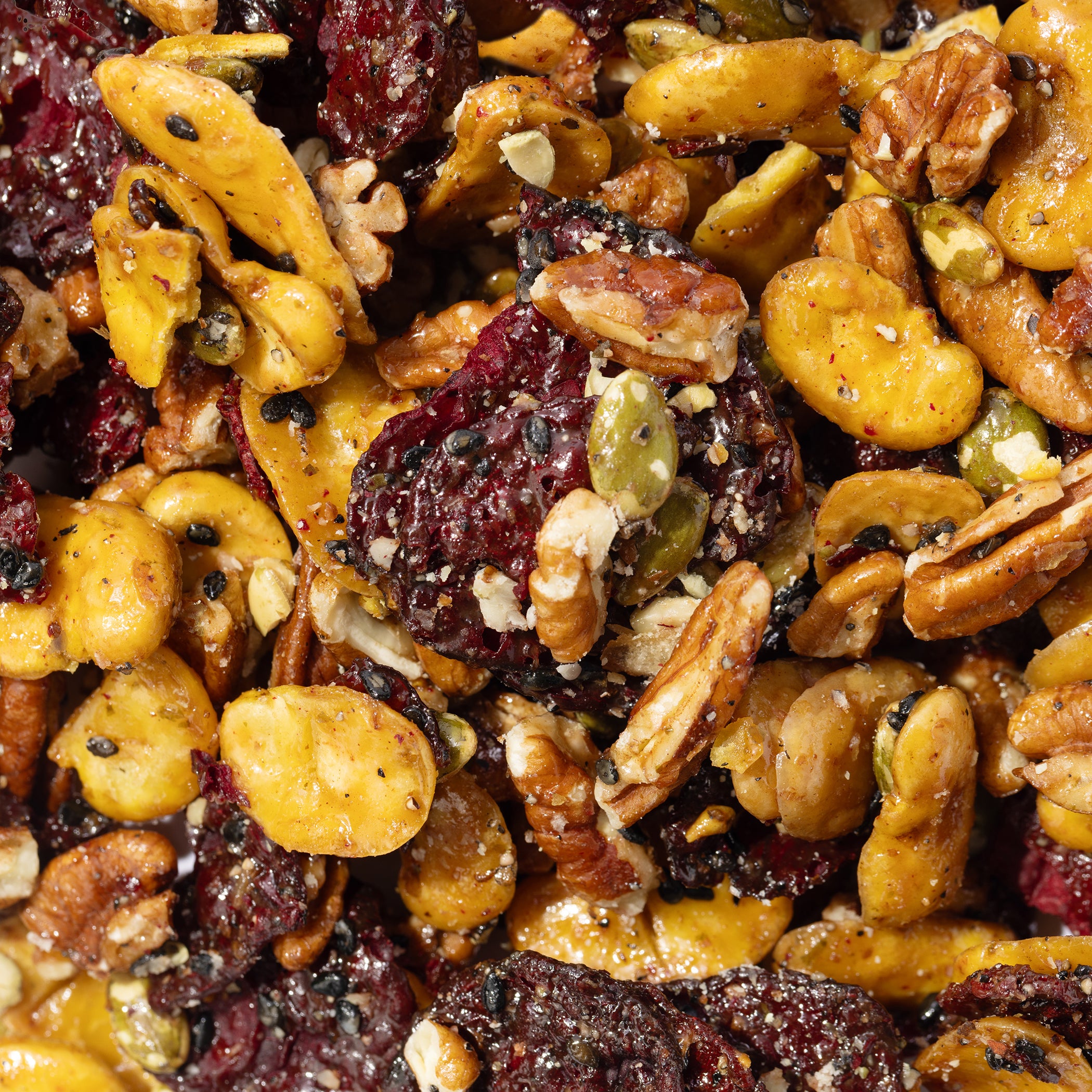 Umami-packed, chef-crafted snack mixes transport you to the wilds through aromas and flavors. Made with New Mexico estate-grown pecans, puffed fava beans, pepitas, black sesame, and aromatic spice blends. Roasted in small batches.
